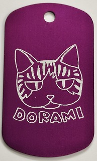 自社の設備でも金型作れば作れるけど、塗装付きタグのみなら、結構安価で手に入る。これに弊社のレーザープリンターでドラミの似顔絵を印刷。