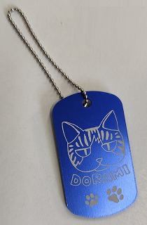ドッグタグならぬ、キャットタグ。使い道はキーホルダーとか、キャットキャリーへの名札とかかな。