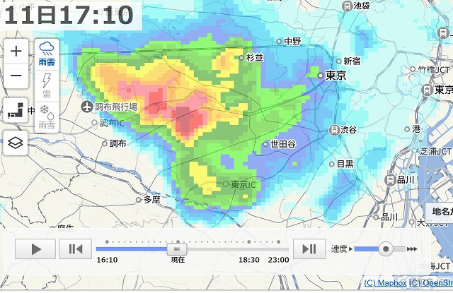 (※雨雲は2時間後には神奈川県方面へ移動するそうです)