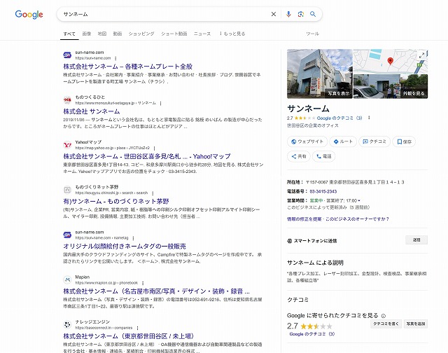 本日(2025/4/16現在)Googleで『サンネーム』と入れると、
