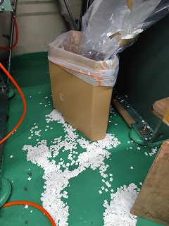 ゴミ袋が満杯になっても、誰も取り替えないので、あふれた廃材が床にダラダラと散乱。
