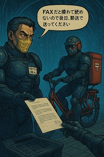 (超絶未来でも通信手段としてFAXを使いつづけるハローワーク役人by愛子)