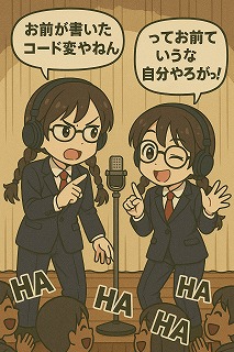 ※漫才風にしたけど、素で(コード修正でボケ)やられるとマジでしんどい・・・