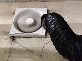 スポットクーラーの排熱は換気扇経由で屋外へ逃がすように排熱経路を再設計。