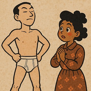 何しろ、男前な振りをし、まさ子ちゃんを守った色男は『白のブリーフ一枚で寒そうにブルブル震えた状態』だったのだから、さぞかし滑稽に映ったのだろう。