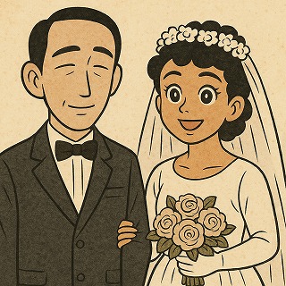まさ子のウエディングドレス姿は本当にきれいだった。友達も親戚も皆、瞳の大きなまさ子に見とれていたのをよく覚えている。