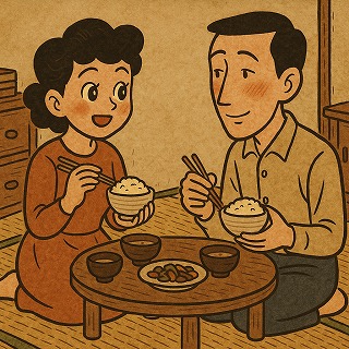 窓から差し込む朝日で目を覚まし、肩を寄せ合いながら夜を迎える。小さなちゃぶ台で向かい合って食べる粗末な食事も、二人でいればご馳走になった。