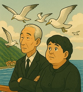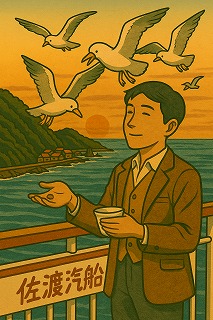 そんな思いが胸をかすめながら、佐渡の輪郭がゆっくりと薄れていく。遠くでカモメが一羽、海原へと舞い上がる。その白い羽が、山本の面影を滲ませていくのだった。