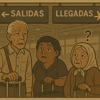 三人は、広大な空港内をぐるぐると回遊するばかりで、一向に目的地に辿り着く気配がない。
