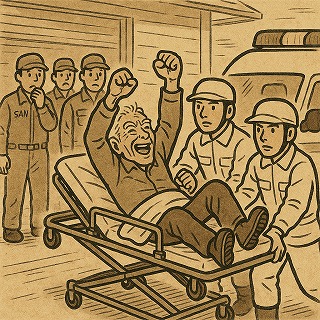 救急車の窓から、サンネームの社屋が遠ざかっていくのが見えた。
